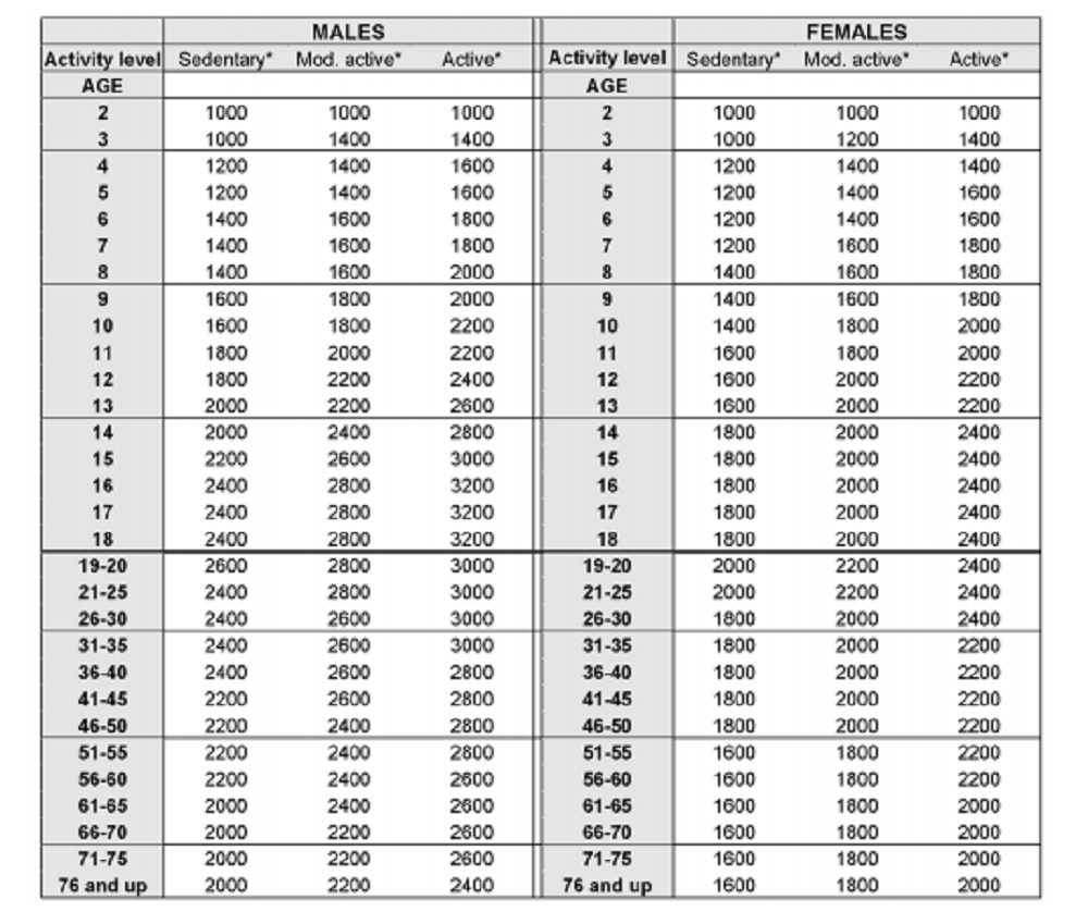 Heard that a lot? Well read on and see the difference of the “Whole Carb Diet” – The lasting difference. Minimising calories to the nth degree is not healthy – Eating smart is. Sure you can count calories and check that you don’t over-eat (Consume more that your body uses throughout the day) and it is good to have a rough idea of how much you need. The average person should consume around 2000 calories per day – but this varies a lot depending on sex, age, height, physical activity levels etc, etc. Below is a quick guide to base yours off – but remember it does vary with what you do during the day and many other things.